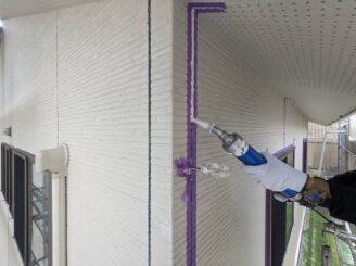 外壁の下塗り材はエポパワーシーラー(透明)を使います。