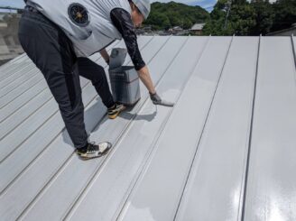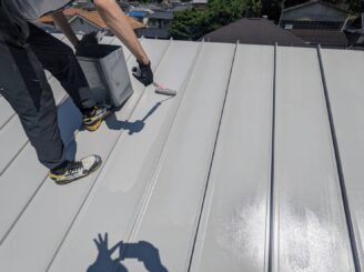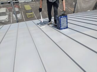 屋根下塗り材はアステック サーモテックメタルプライマー(グレー)を使います。