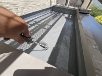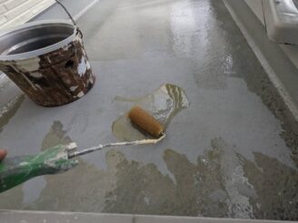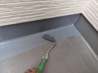 ウレタン塗の防水トップコート下塗りを塗っていきます。