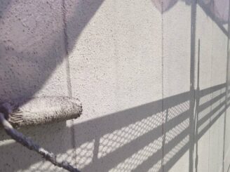 外壁に下塗り材を塗っていきます。