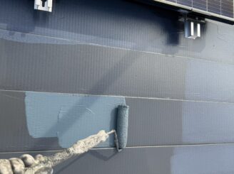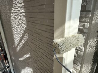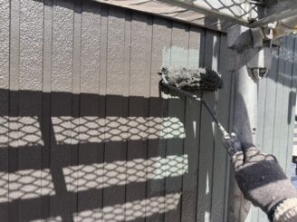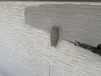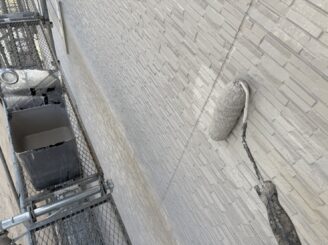 外壁に下塗り材を塗っていきます。