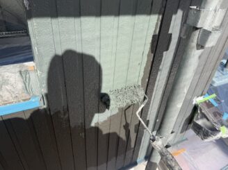 破風に中塗り材を塗っていきます。