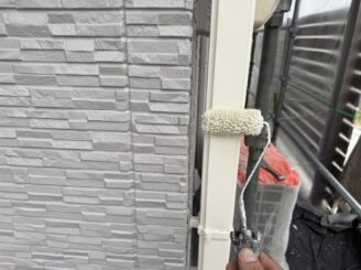 縦樋に中塗り材を塗っていきます。