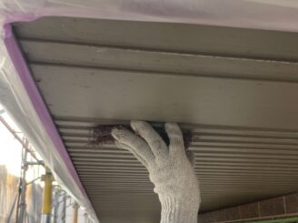 錆び止めが良く乾燥したら下塗り材を塗っていきます。