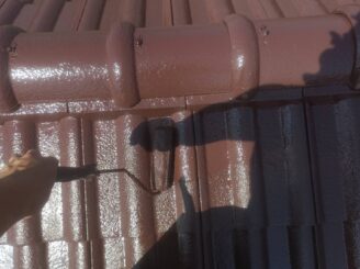 中塗り材が良く乾燥したら上塗り材を塗って完了です。