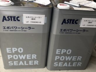 外壁下塗り材はエポパワーシーラー(透明)を使っていきます。