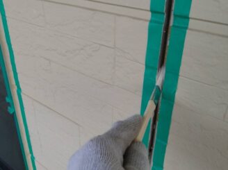 プライマーが良く乾燥したらコーキング材を充填し、ヘラで押さえたらコーキング打ち替えの完了です。