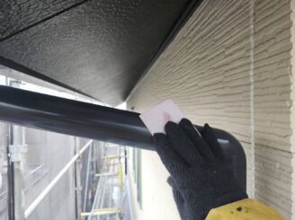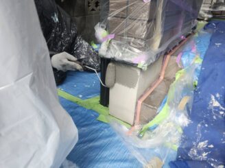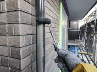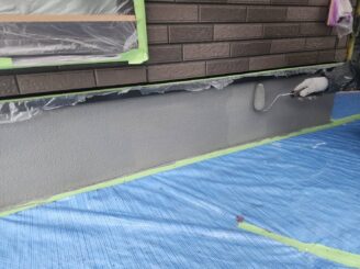中塗り材がよく乾燥したら上塗り材をぬり基礎上塗りの完了です。