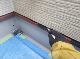 コーキングの接着を良くするためにプライマーを塗っていきます。